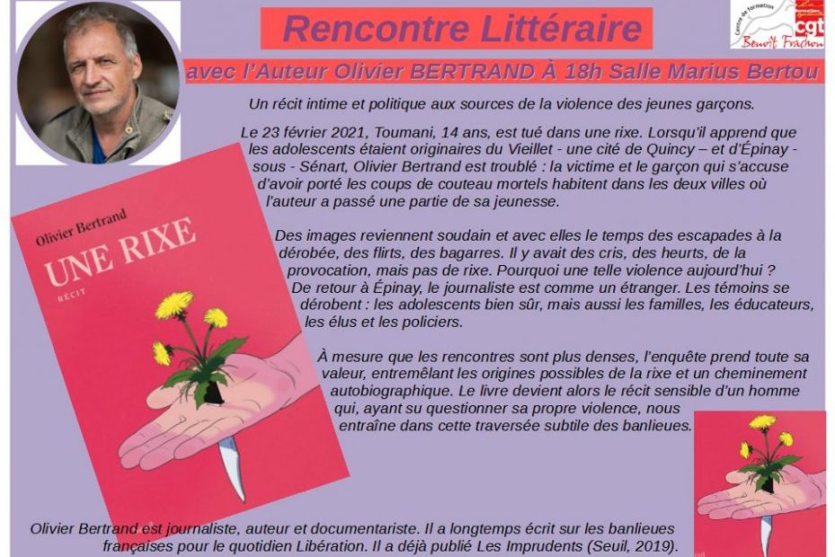 La Rixe, sorti en novembre 2023 aux éditions du Seuil, vise à répondre à une question assez simple : pourquoi et comment des adolescents en arrivent à se battre avec un tel degré de violence que la mort en découle parfois ?… Lire la suite »Mardi 09/12 Rencontre Littéraire !