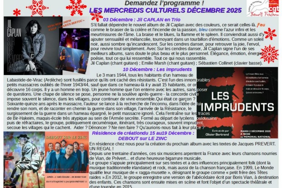 🎭🎶Programmation Concerts/spectacles Décembre 2025