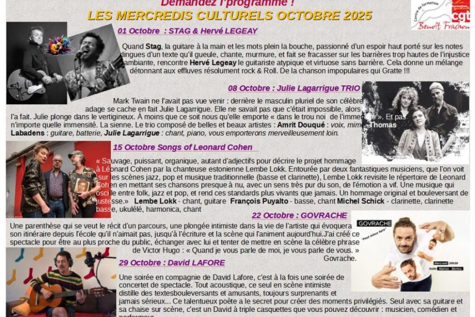 🎭🎶Programmation Concerts/spectacles Octobre 2025